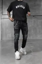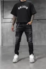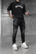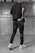 „Descoperă autenticitatea și stilul rebel cu această pereche de blugi pentru bărbați, ce prezintă o ușoară uzură și câteva rupturi. Designul lor distins adaugă o notă de originalitate în ținutele tale. Confecționați dintr-un denim de calitate superioară, blugii oferă nu doar un aspect contemporan, ci și o durabilitate deosebită. Uzura strategică și rupturile subtile conferă acestor blugi un aer nonconformist și îndrăzneț. Sunt ideali pentru un look urban și casual, completându-ți atitudinea într-un mod distinctiv. Asortează-i cu o cămașă simplă sau cu un tricou trendy și exprimă-ți personalitatea prin acesti blugi autentici și plini de caracter.”
