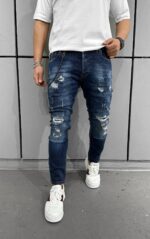 „Descoperă autenticitatea și stilul rebel cu această pereche de blugi pentru bărbați, ce prezintă o ușoară uzură și câteva rupturi. Designul lor distins adaugă o notă de originalitate în ținutele tale. Confecționați dintr-un denim de calitate superioară, blugii oferă nu doar un aspect contemporan, ci și o durabilitate deosebită. Uzura strategică și rupturile subtile conferă acestor blugi un aer nonconformist și îndrăzneț. Sunt ideali pentru un look urban și casual, completându-ți atitudinea într-un mod distinctiv. Asortează-i cu o cămașă simplă sau cu un tricou trendy și exprimă-ți personalitatea prin acesti blugi autentici și plini de caracter.”