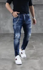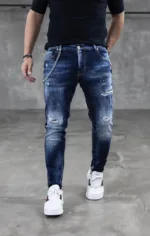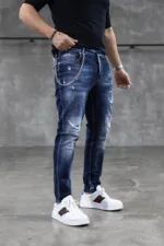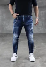 “Descoperă autenticitatea și stilul rebel cu această pereche de blugi pentru bărbați, ce prezintă o ușoară uzură și câteva rupturi. Designul lor distins adaugă o notă de originalitate în ținutele tale. Confecționați dintr-un denim de calitate superioară, blugii oferă nu doar un aspect contemporan, ci și o durabilitate deosebită. Uzura strategică și rupturile subtile conferă acestor blugi un aer nonconformist și îndrăzneț. Sunt ideali pentru un look urban și casual, completându-ți atitudinea într-un mod distinctiv. Asortează-i cu o cămașă simplă sau cu un tricou trendy și exprimă-ți personalitatea prin acesti blugi autentici și plini de caracter.”