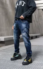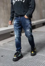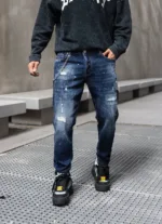 “Descoperă autenticitatea și stilul rebel cu această pereche de blugi pentru bărbați, ce prezintă o ușoară uzură și câteva rupturi. Designul lor distins adaugă o notă de originalitate în ținutele tale. Confecționați dintr-un denim de calitate superioară, blugii oferă nu doar un aspect contemporan, ci și o durabilitate deosebită. Uzura strategică și rupturile subtile conferă acestor blugi un aer nonconformist și îndrăzneț. Sunt ideali pentru un look urban și casual, completându-ți atitudinea într-un mod distinctiv. Asortează-i cu o cămașă simplă sau cu un tricou trendy și exprimă-ți personalitatea prin acesti blugi autentici și plini de caracter.”