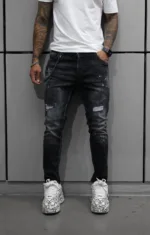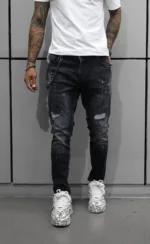 „Descoperă autenticitatea și stilul rebel cu această pereche de blugi pentru bărbați, ce prezintă o ușoară uzură și câteva rupturi. Designul lor distins adaugă o notă de originalitate în ținutele tale. Confecționați dintr-un denim de calitate superioară, blugii oferă nu doar un aspect contemporan, ci și o durabilitate deosebită. Uzura strategică și rupturile subtile conferă acestor blugi un aer nonconformist și îndrăzneț. Sunt ideali pentru un look urban și casual, completându-ți atitudinea într-un mod distinctiv. Asortează-i cu o cămașă simplă sau cu un tricou trendy și exprimă-ți personalitatea prin acesti blugi autentici și plini de caracter.”