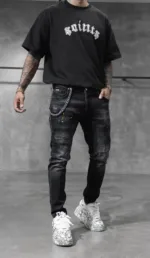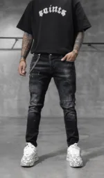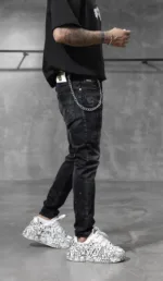 “Descoperă autenticitatea și stilul rebel cu această pereche de blugi pentru bărbați, ce prezintă o ușoară uzură și câteva rupturi. Designul lor distins adaugă o notă de originalitate în ținutele tale. Confecționați dintr-un denim de calitate superioară, blugii oferă nu doar un aspect contemporan, ci și o durabilitate deosebită. Uzura strategică și rupturile subtile conferă acestor blugi un aer nonconformist și îndrăzneț. Sunt ideali pentru un look urban și casual, completându-ți atitudinea într-un mod distinctiv. Asortează-i cu o cămașă simplă sau cu un tricou trendy și exprimă-ți personalitatea prin acesti blugi autentici și plini de caracter.”