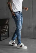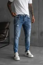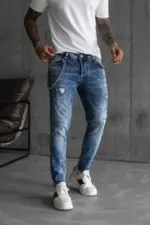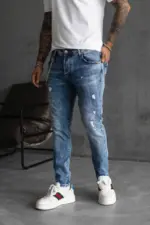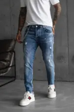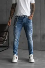 “Descoperă autenticitatea și stilul rebel cu această pereche de blugi pentru bărbați, ce prezintă o ușoară uzură și câteva rupturi. Designul lor distins adaugă o notă de originalitate în ținutele tale. Confecționați dintr-un denim de calitate superioară, blugii oferă nu doar un aspect contemporan, ci și o durabilitate deosebită. Uzura strategică și rupturile subtile conferă acestor blugi un aer nonconformist și îndrăzneț. Sunt ideali pentru un look urban și casual, completându-ți atitudinea într-un mod distinctiv. Asortează-i cu o cămașă simplă sau cu un tricou trendy și exprimă-ți personalitatea prin acesti blugi autentici.