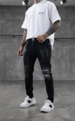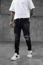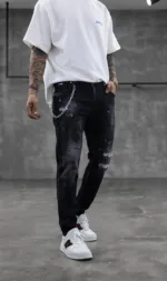 “Descoperă autenticitatea și stilul rebel cu această pereche de blugi pentru bărbați, ce prezintă o ușoară uzură și câteva rupturi. Designul lor distins adaugă o notă de originalitate în ținutele tale. Confecționați dintr-un denim de calitate superioară, blugii oferă nu doar un aspect contemporan, ci și o durabilitate deosebită. Uzura strategică și rupturile subtile conferă acestor blugi un aer nonconformist și îndrăzneț. Sunt ideali pentru un look urban și casual, completându-ți atitudinea într-un mod distinctiv. Asortează-i cu o cămașă simplă sau cu un tricou trendy și exprimă-ți personalitatea prin acesti blugi autentici și plini de caracter.”