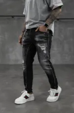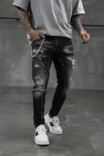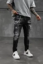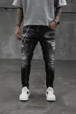 Confecționați dintr-un denim de calitate superioară, blugii oferă nu doar un aspect contemporan, ci și o durabilitate deosebită. Uzura strategică și rupturile subtile conferă acestor blugi un aer nonconformist și îndrăzneț. Sunt ideali pentru un look urban și casual, completându-ți atitudinea într-un mod distinctiv. Asortează-i cu o cămașă simplă sau cu un tricou trendy și exprimă-ți personalitatea prin acesti blugi autentici și plini de caracter.