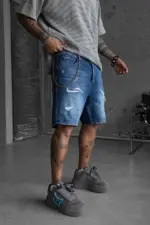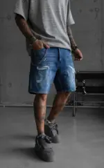 „Îmbracă-te cu stil și confort în acești blugi scurți loose fit de bărbați! Fabricați dintr-un material durabil și ușor elastic, acești blugi sunt perfecti pentru zilele călduroase de vară. Croiala lejeră le oferă un aspect relaxat și modern, iar designul clasic cu buzunare laterale și buzunare spate adaugă un aer casual și practic. Poartă-i cu o cămașă simplă și o pereche de adidași pentru un look de oraș sau cu o tricou și sandale pentru o plimbare pe plajă relaxantă. Eleganță și confort se întâlnesc în acești blugi scurți versatile, indispensabili pentru garderoba ta de vară!”