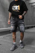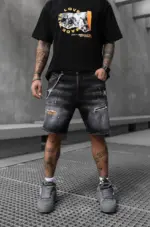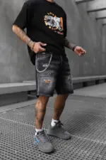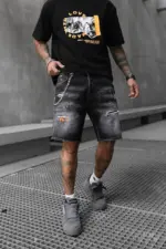 „Îmbracă-te cu stil și confort în acești blugi scurți loose fit de bărbați! Fabricați dintr-un material durabil și ușor elastic, acești blugi sunt perfecti pentru zilele călduroase de vară. Croiala lejeră le oferă un aspect relaxat și modern, iar designul clasic cu buzunare laterale și buzunare spate adaugă un aer casual și practic. Poartă-i cu o cămașă simplă și o pereche de adidași pentru un look de oraș sau cu o tricou și sandale pentru o plimbare pe plajă relaxantă. Eleganță și confort se întâlnesc în acești blugi scurți versatile, indispensabili pentru garderoba ta de vară!”