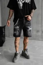 „Îmbracă-te cu stil și confort în acești blugi scurți loose fit de bărbați! Fabricați dintr-un material durabil și ușor elastic, acești blugi sunt perfecti pentru zilele călduroase de vară. Croiala lejeră le oferă un aspect relaxat și modern, iar designul clasic cu buzunare laterale și buzunare spate adaugă un aer casual și practic. Poartă-i cu o cămașă simplă și o pereche de adidași pentru un look de oraș sau cu o tricou și sandale pentru o plimbare pe plajă relaxantă. Eleganță și confort se întâlnesc în acești blugi scurți versatile, indispensabili pentru garderoba ta de vară!”